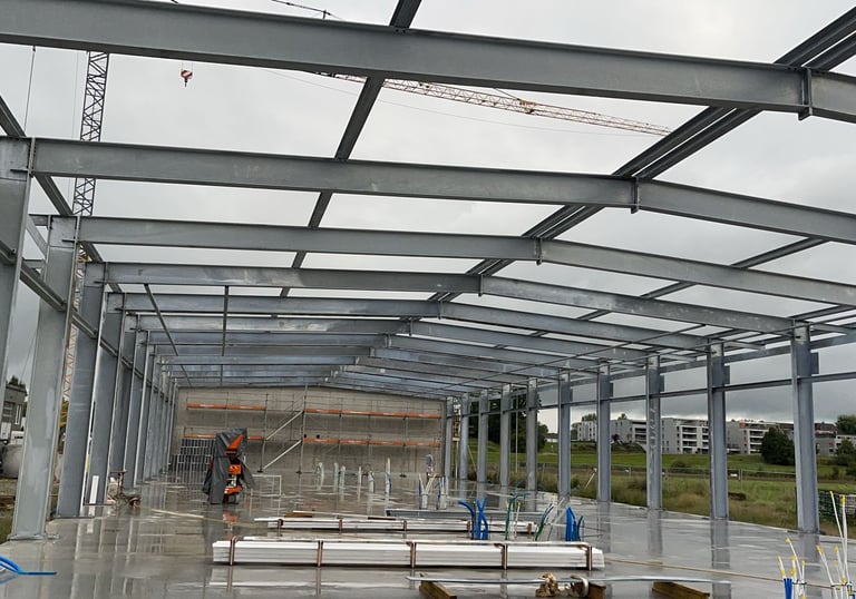 Jede Stahlhalle wird in unserer eigenen Produktion individuell geplant und gefertigt, um Ihre spezifischen Anforderungen an Größe, Funktion und Stabilität zu erfüllen.